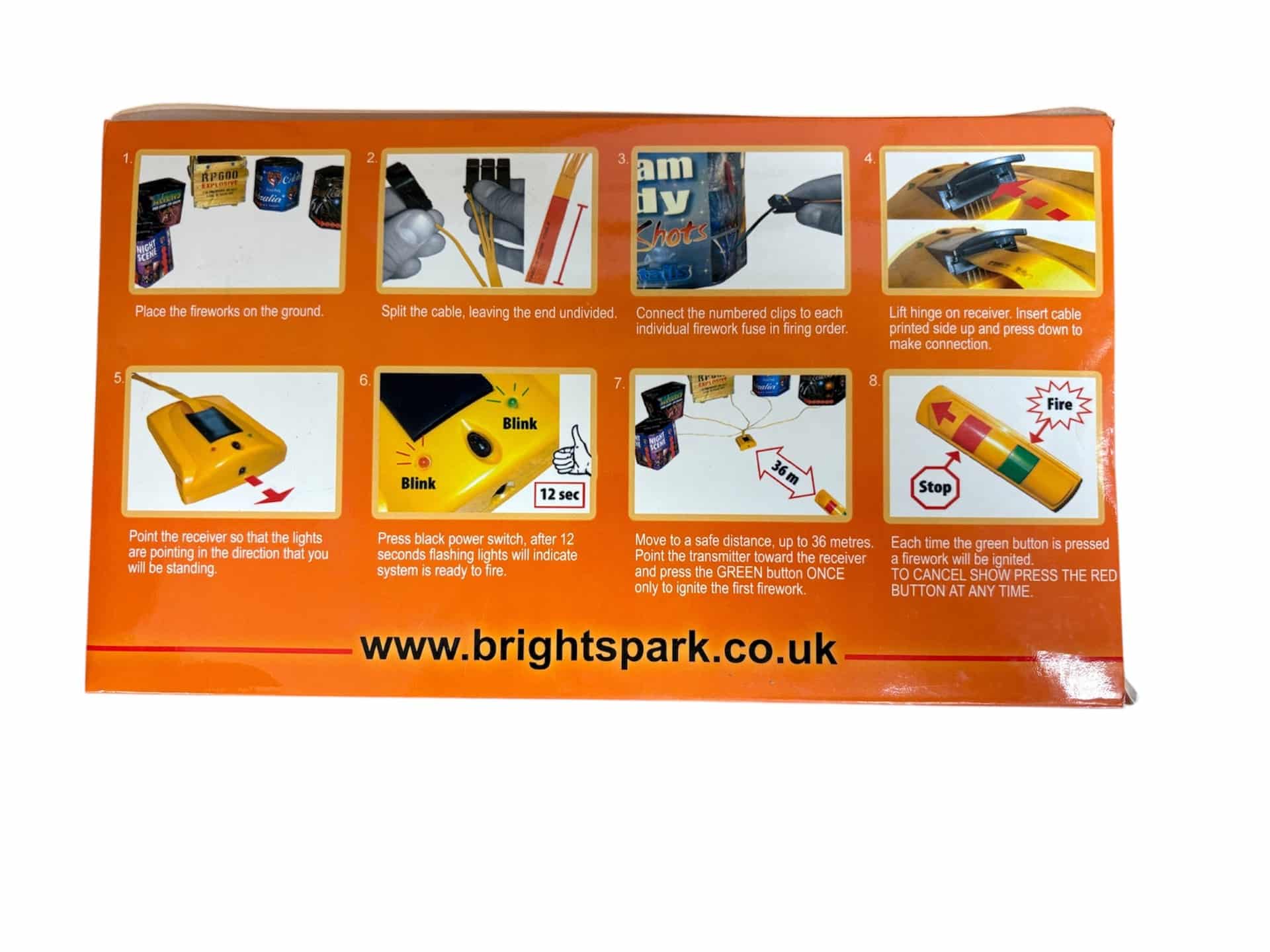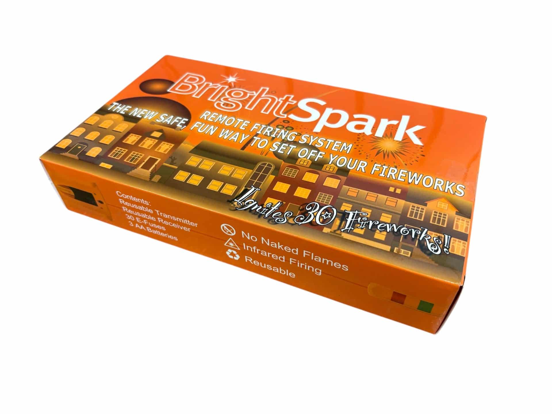 “BrightSpark” is the smart new way to ignite all your fireworks safely and easily. Move to a safe distance, up to 36 metres and press the green button once only to ignite the first firework.